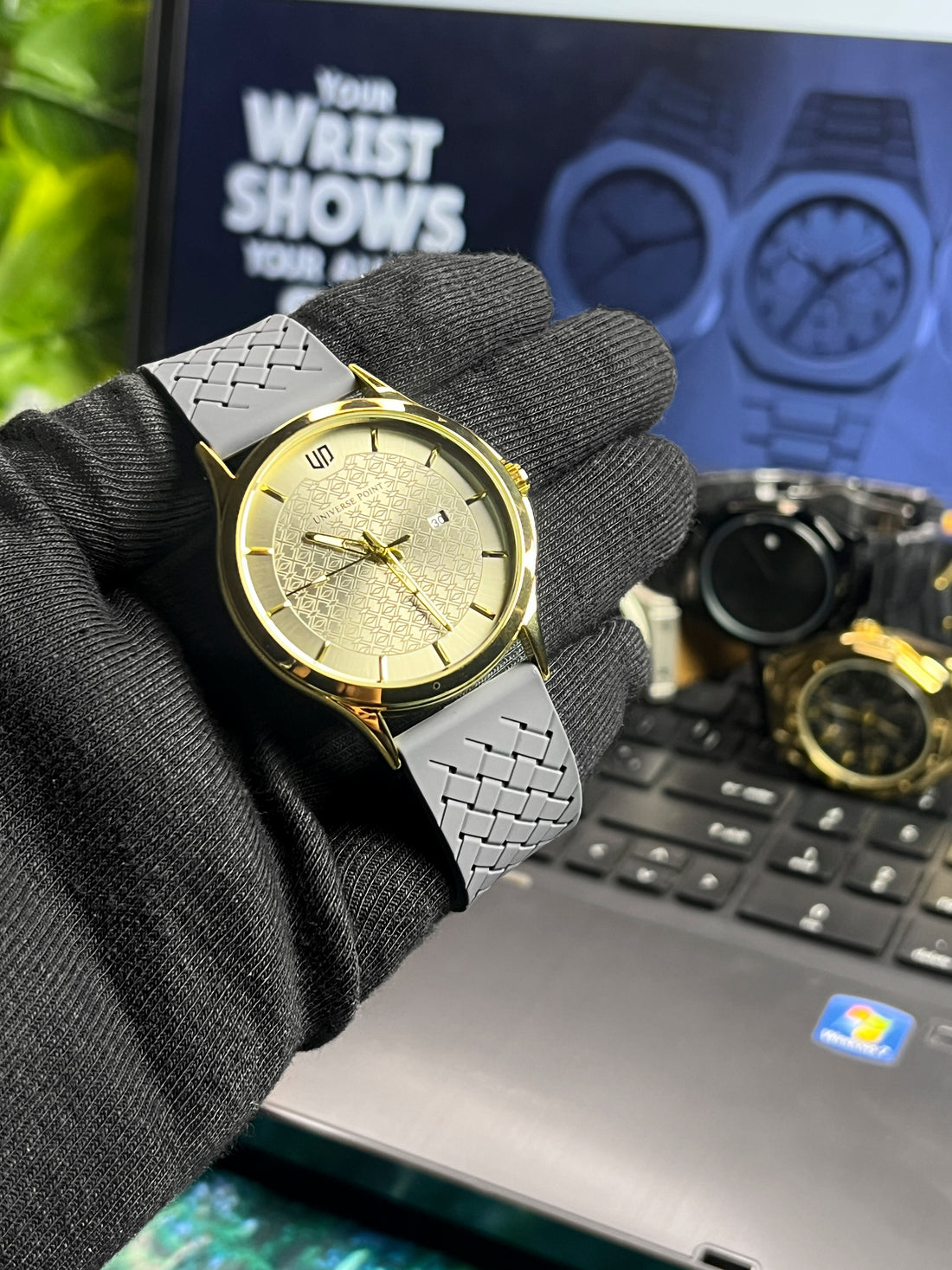 Universe Point (UP) Men's Luxury Gold Watch – Textured Dial with Date Display