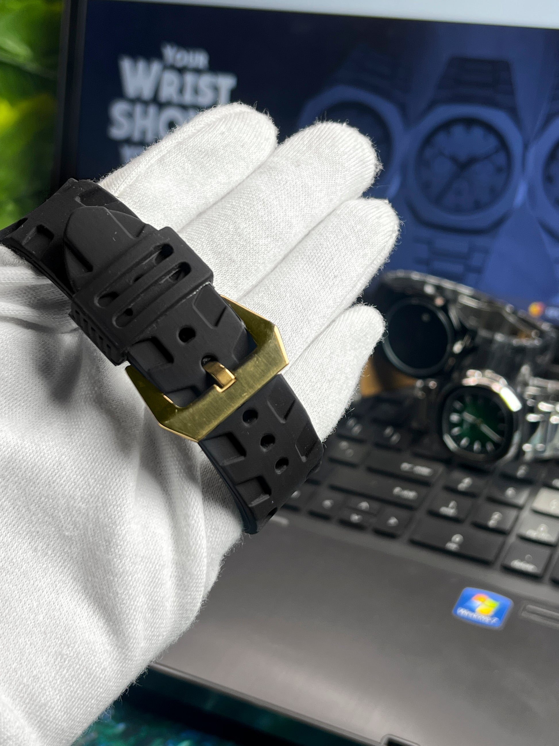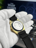 Secure & Stylish Strap: The robust black strap provides a secure fit and creates a stunning contrast against the brilliance of the gold case.