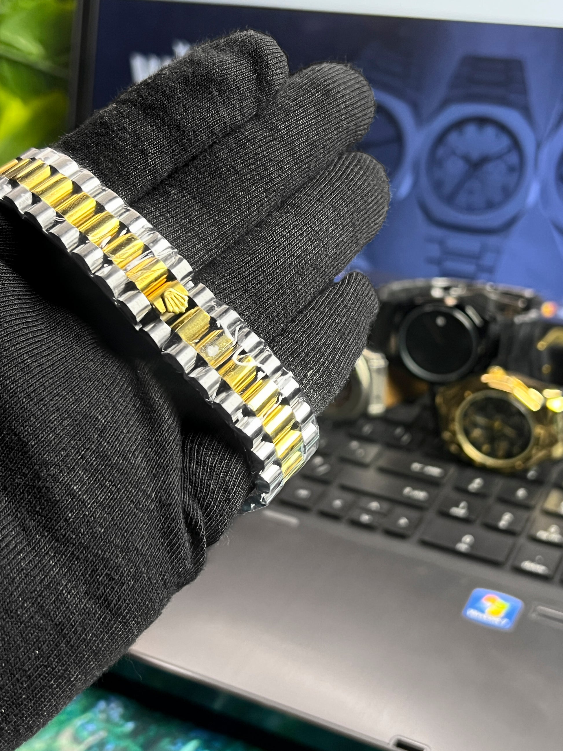 Case & Bracelet: A timeless two-tone construction (silver and gold), crafted in the classic Oyster style for durability and comfort.